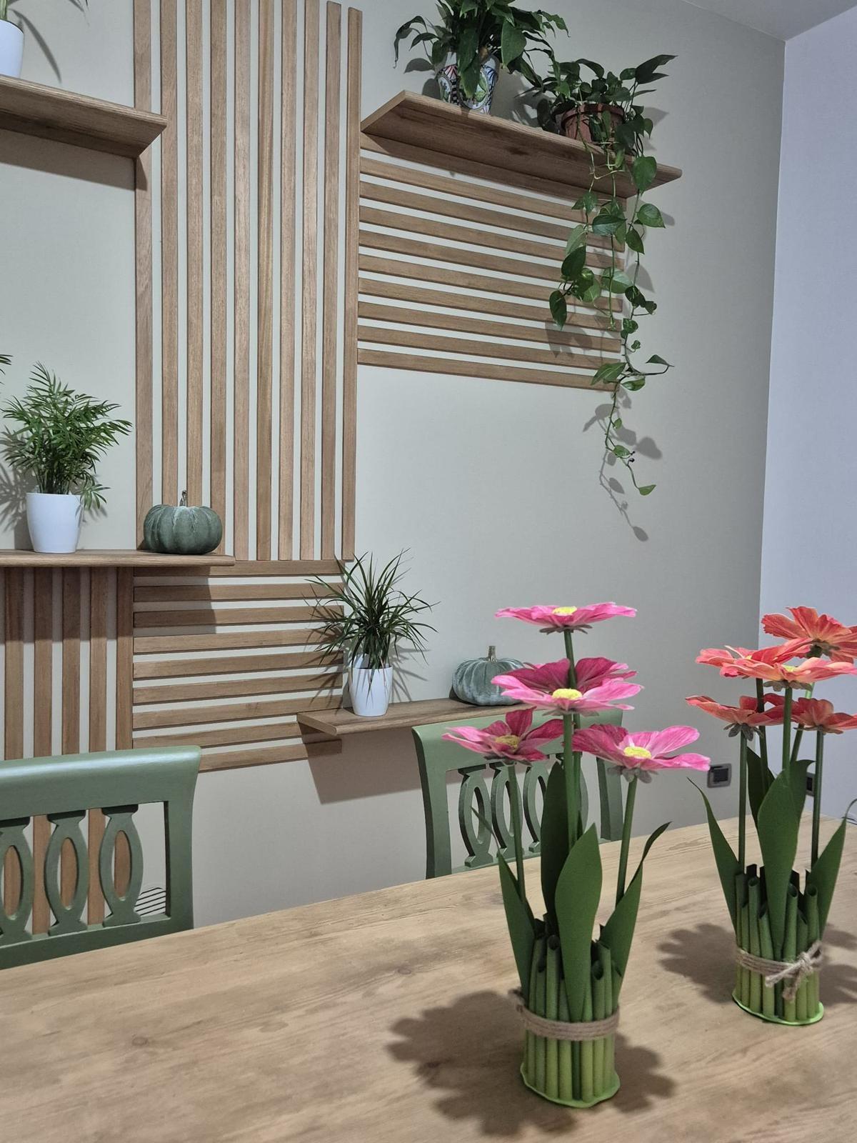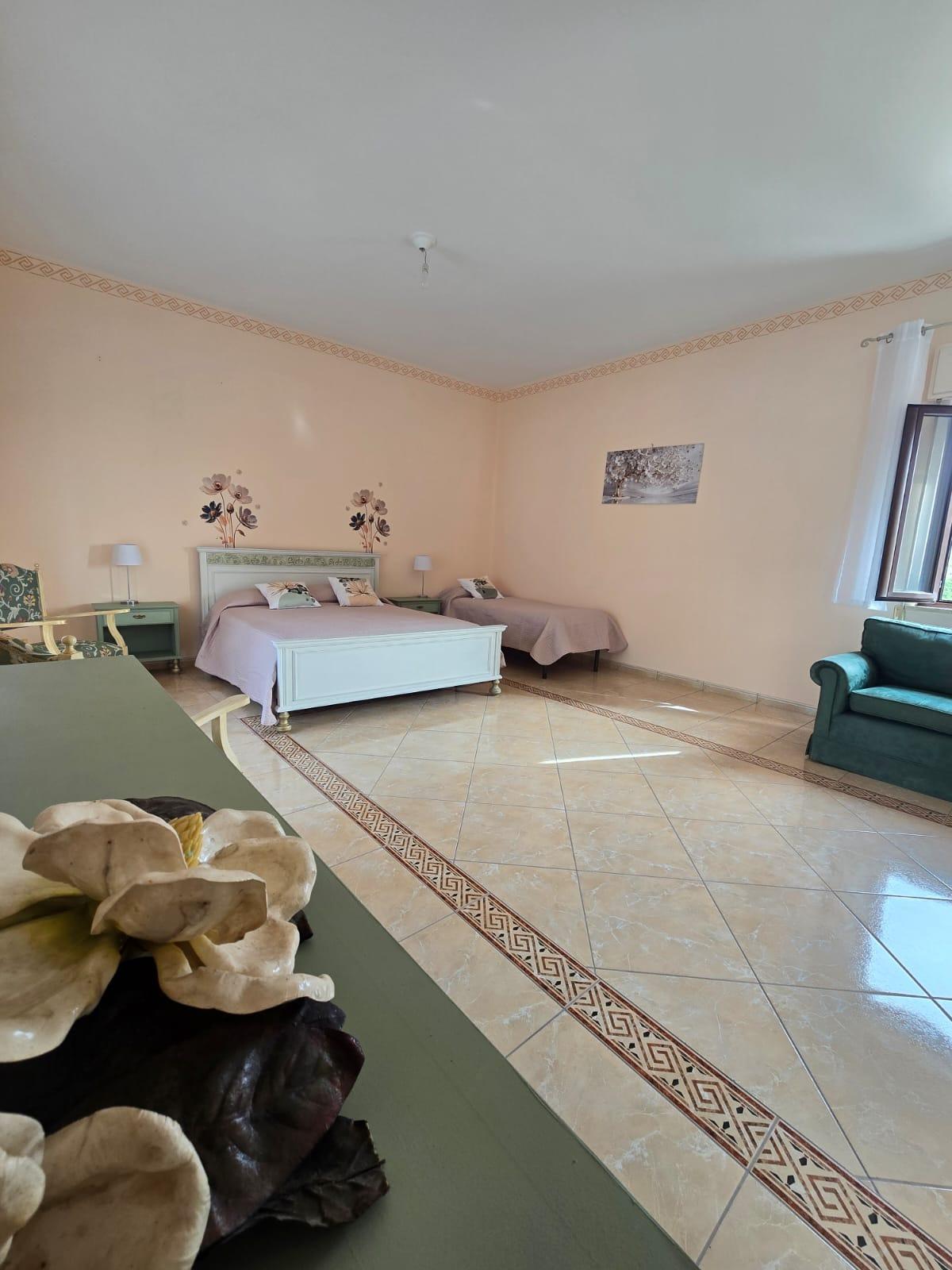 La struttura offre 3 camere in un appartamento e 2 in un altro, e uno spazio comune di cucina, salone terrazza e giardino.
